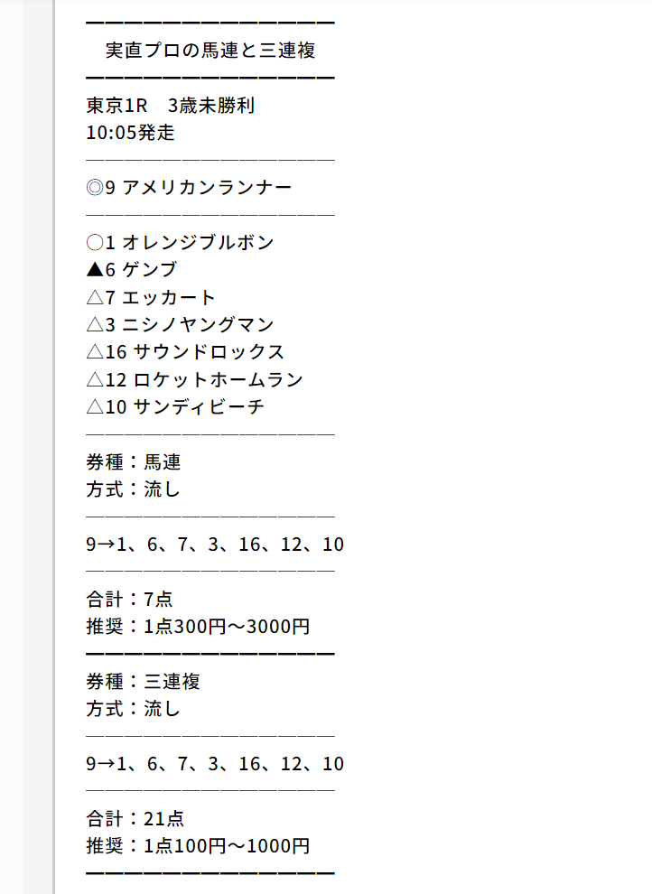 トリガミ濃厚の買い目に