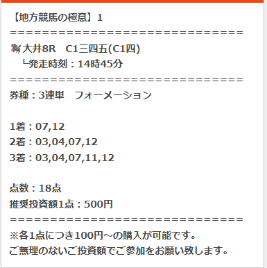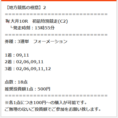 と決めていて実際に4連勝していたので金曜日地方競馬の極意を購入