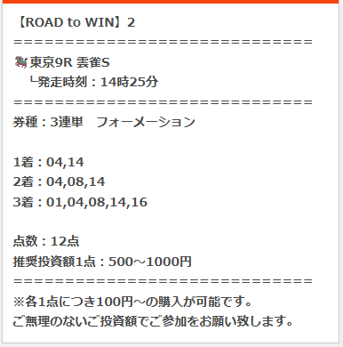 2月14日(土)と15日(日)のロードトゥーウイン購入しました!