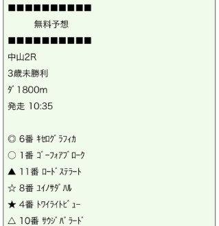 この日の無料予想は2鞍提供2鞍的中!