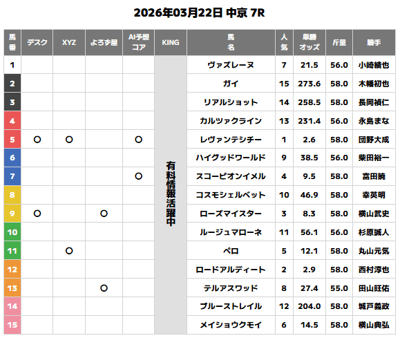 3月28日(土)の中山9Rの無料予想から私は参戦